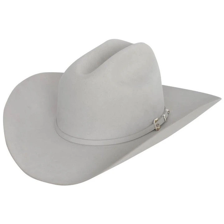 The Stetson El Patron 30X fur low cowboy hat has a 4″ hat brim and 4 5/8″ cattleman crease hat crown. This classic fur felt western hat has a 1/2″ self band with three-piece buckle set embellished with four red stones. Highest caliber Stetson cowboy hats are painstakingly made to meet the most exacting of standards. This premium western hat is made with superior quality fur for unparalleled durability, beautiful sheen, and silken feel.