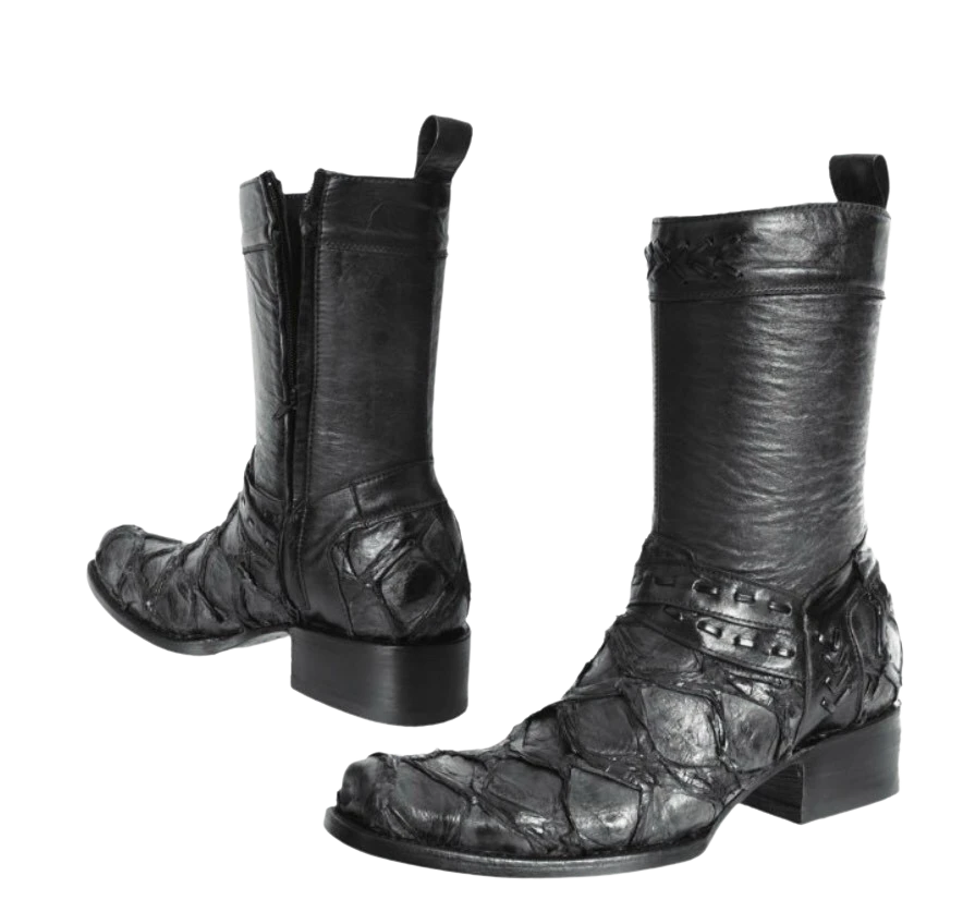 Fish leather ankle boots in black, handmade, with a leather sole, of great durability and resistance, ideal for any type of activity, medium tube with a zipper that favors the fit to the foot, with a soft insole that provides comfort.