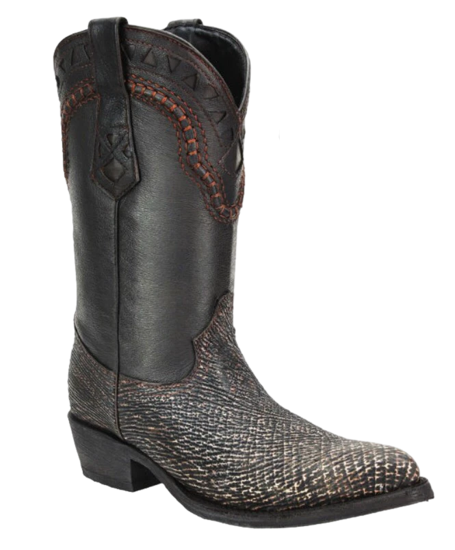 Shark leather boots in black, handmade, with a leather sole, of great durability and resistance, ideal for any type of activity, medium tube that favors the fit to the foot, with a soft insole that provides comfort.